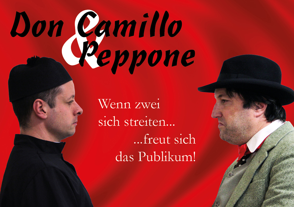 Die Theaterschaffenden Christos Papadopoulos und Thomas Lüdi hauchen nun den beiden witzig-hitzigen Figuren neues Leben ein. Sie haben dazu ein humorvolles und aktuelles Comedyprogramm geschrieben. Sie spielten die Rollen als Don Camillo und Peppone bereits vor einigen Jahren in zwei verschiedenen Bühnenstücken mit der Theatergruppe «Bühne frei». Don Camillo und Peppone kamen beim Publikum so gut an, dass Christos und Thomas sich entschlossen, verschiedene Nummern zu schreiben.